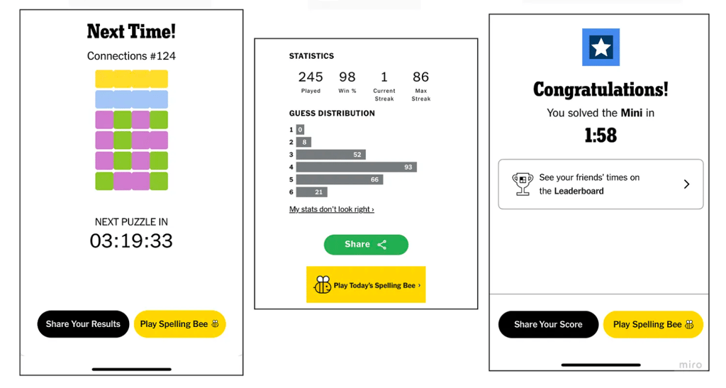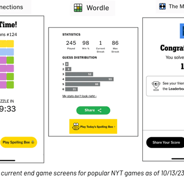 Given the lack of advertising in the app, other typical metrics like “time in app” are less applicable but still interesting from a product management perspective. Niemanlab published an article highlighting what the NYTimes looks for in prospective games. If nothing else, NYT needs to find a way to capitalize on the mini communities that share Wordle scores daily and have developed their own tracking mechanisms.